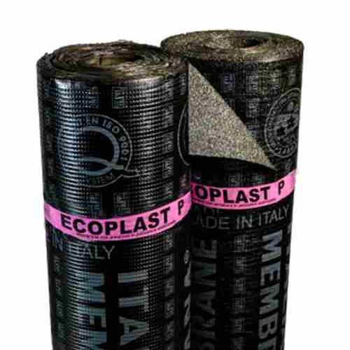 ECOPLAST P Sand upper finish is a waterproofing membrane with a plastomer-modified distilled bitumen compound. The products have a reinforcement of stabilized polyester composite nonwoven fabric.